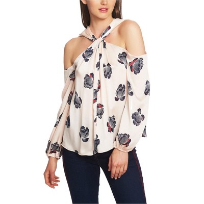 1.STATE Womens Floral Twist Neck Cold Shoulder Blouse