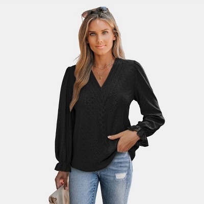 Long Sleeve Blouse: A long sleeve blouse offers versatility and sophistication. Choose a sleek satin style for evening wear or a cotton poplin and white blouse for daytime chic. The added sleeve length and blouse shirts makes it a great transitional piece between seasons.