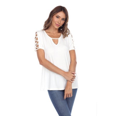 Women's Keyhole Neck Cutout Short Sleeve Top - White Mark