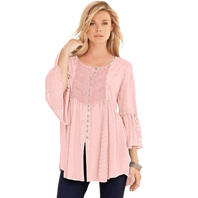 Woman Within Rayon 7-Day Three-Quarter Sleeve Tab-Front Tunic