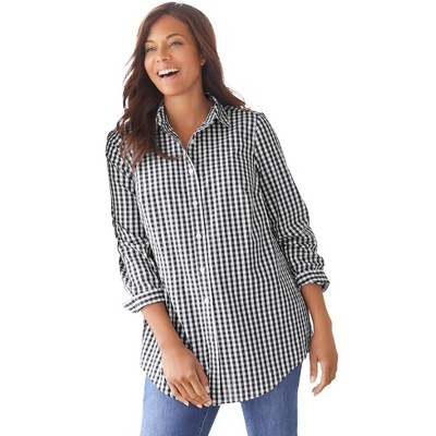 Women's  Roll Tab Sleeve Plaid Buttoned Top - White Mark