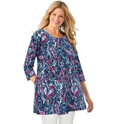 Woman Within Ruffled Elbow-Sleeve Tunic