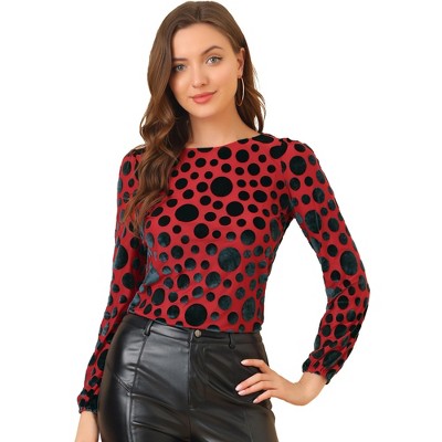 Allegra K Women's Polka Dots Burn-Out Long Sleeve Velvet Top