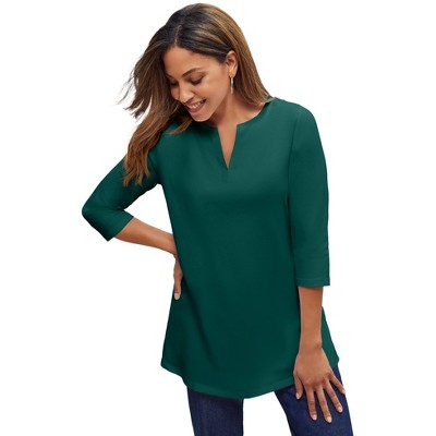 Roaman's Plus Size Cotton Ultimate Boatneck Tunic With Side Slits