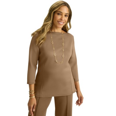 Anna-Kaci Women's Long Sleeve Scoop Neck Stretch Knit Top
