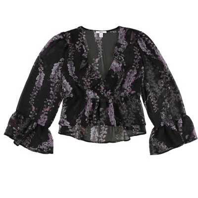 1.STATE Womens Flower Etching Floral Pullover Blouse