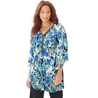 Roaman's Plus Size Soft Knit Print Tunic With Notch Neckline