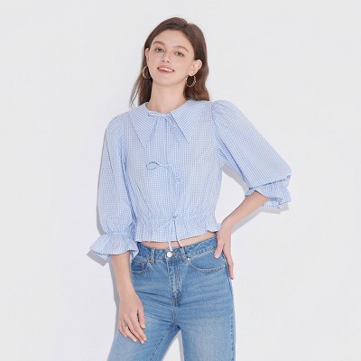 Puff Sleeve Tops: The puff sleeve trend adds a touch of vintage-inspired drama to modern blouses with ruffle. Whether subtle or bold, puff sleeves create a flattering silhouette by balancing structure and softness — perfect for pairing with high-rise jeans or a midi skirt.