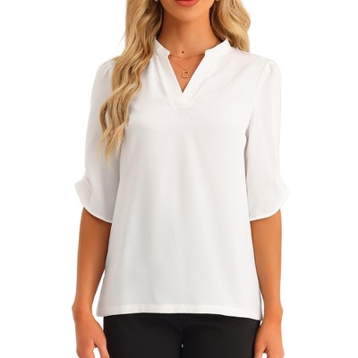 Long Sleeve Blouse: A long sleeve blouse offers versatility and sophistication. Choose a sleek satin style for evening wear or a cotton poplin and white blouse for daytime chic. The added sleeve length and blouse shirts makes it a great transitional piece between seasons.