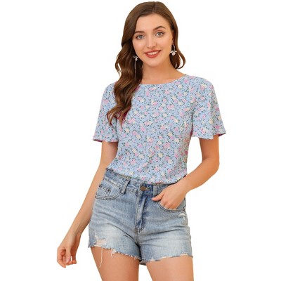 Allegra K Women's Bow Tie Round Neck 3/4 Raglan Sleeve Floral Blouse