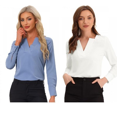 Long Sleeve Blouse: A long sleeve blouse offers versatility and sophistication. Choose a sleek satin style for evening wear or a cotton poplin and white blouse for daytime chic. The added sleeve length and blouse shirts makes it a great transitional piece between seasons.