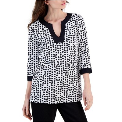 Anne Klein Womens Contrast-Border Tunic Blouse