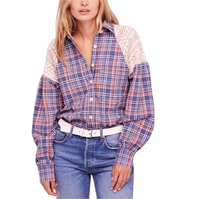 Free People Womens Fireside Nights Button Up Shirt