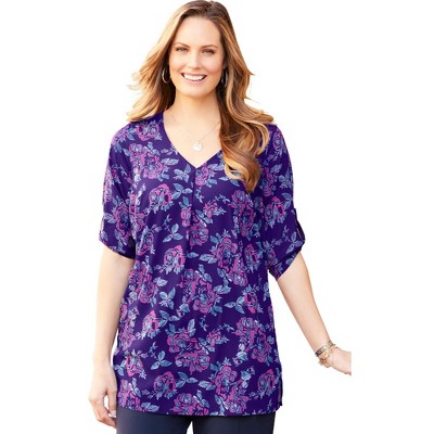 Roaman's Plus Size Slub V-Neck Boyfriend Tunic Top
