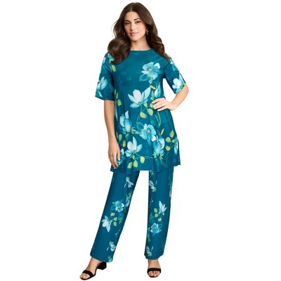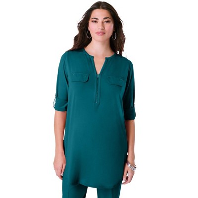 Roaman's Plus Size Three-Quarter Sleeve Notch Neck Soft Knit Tunic