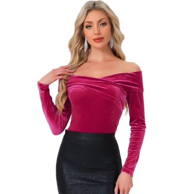 INSPIRE CHIC Women's Velvet Stand Collar Long Sleeve Elegant Casual Blouse