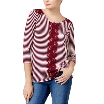 maison Jules Womens Lace Trim Knit Blouse