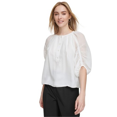 WEST K Women's Leah V Neck Short Dolman Sleeve Front Knob Blouse