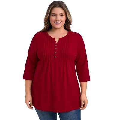 Women's Plus Size Long Sleeve V Neck Loose Fashion Buttons Tunic Blouse - Agnes Orinda