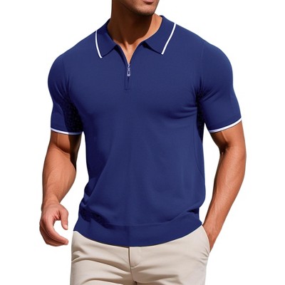 INSPIRE CHIC Men's Textured Knit V Neck Short Sleeve Casual Golf Polo Shirt