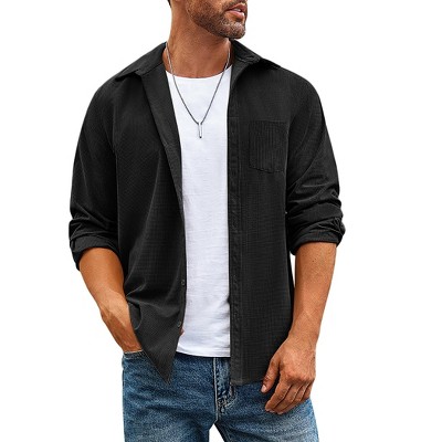 Add some new touches to your wardrobe with a wide variety of men’s tops from Target. Whether it is T-shirts, polo shirts, short shirts, sleeve shirts, tank tops, or hoodies, there’s something for everyone. You can also get that perfect fit you are looking for with slim-fit shirts, tees and more to dress for your night out. Pick something fancy like button-down or button-up men’s sleeve shirts for big occasions. If it is workout clothing you are looking for, Target’s range of moisture-wicking men’s T-shirts will fit your requirements. When it gets chilly outdoors, you can even layer up with an assortment of long-sleeve t-shirts with sweaters to keep warm. Browse through Target.com for the latest tees and shirts in men’s fashion to stay stylish!