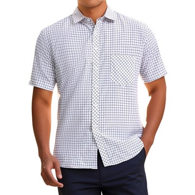 INSPIRE CHIC Men's Short Sleeves Button Down Gingham Pattern Shirt