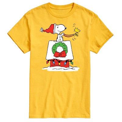 Men's - Peanuts - Snoopy & Woodstock House Sleigh Short Sleeve Graphic T-Shirt