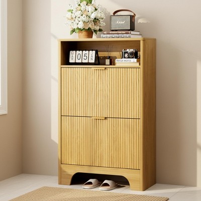 Homy Casa Modern Shoe Cabinet with 2 Flip Drawers and Storage Shelf for Entryway,Walnut
