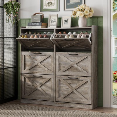 Shoe Cabinet with Flip Drawers, Narrow Freestanding Rack