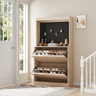 Narrow Shoe Cabinet , 3 Flip Drawers Shoe Cabinet for Entryway,Hallway