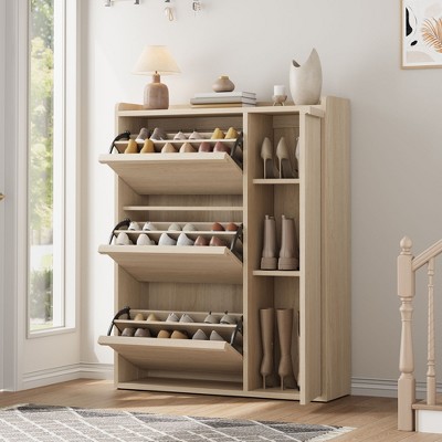 Rattan Shoe Storage Cabinet with 3 Flip Drawers, 4-Tier Shoe Organizer for Entryway, Hallway