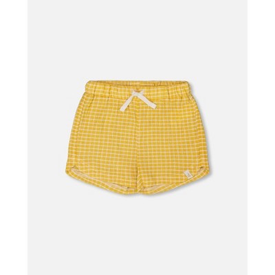 Deux par Deux Girl Crinkle Short Pale Yellow and White