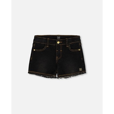 Deux par Deux Girl Jean Short with Embroidery Black Jeans