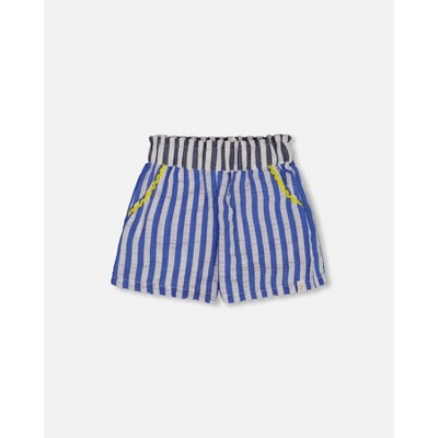 Deux par Deux Girl Seersucker Short Blue and White Striped