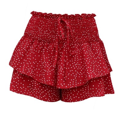 Women's Smocked Waist Shorts Polka Dot Ruffled Tiered Hem Shorts