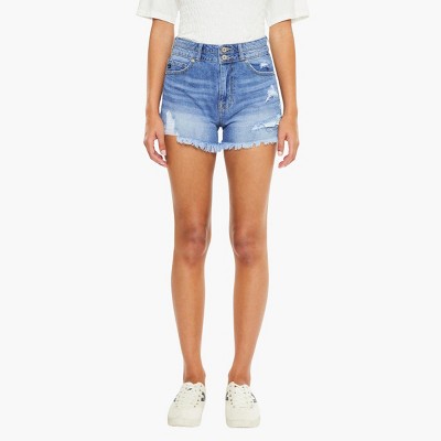 Womens High Waist Denim Shorts Rolled Hem Pocket Button Casual Shorts