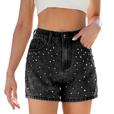 Women's Rhinestone Denim Shorts Summer Casual High Waist Trendy Y2K Jean Short