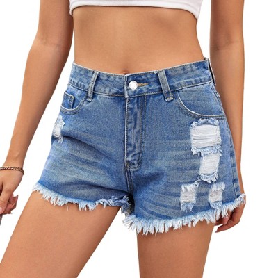 Womens Denim Shorts High Waisted Distressed Fringed Raw Hem Casual Shorts