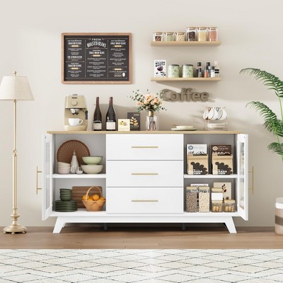 Planning a big family dinner or a wholesome buffet? We got you! Add additional storage to your dining space with a stylish sideboard or buffet table. Sideboards give you ample space to store your dinnerware, flatware and other dining essentials. Cabinets with drawers and shelves let you organize decor, pantry must-haves and tableware, so you are always ready to entertain. Sideboards & buffets also make a great addition to your entryway where you can store or display books, plants and family photographs too. Choose furniture based on the material, from hardwood to metal, find the right cabinet for you. If you are looking to organize your dinnerware, go for a buffet cabinet with drawers that give you more storage space. For displaying collectibles and decor, check out cabinets with a bigger tabletop and open shelves. With the wide collection at Target, you can pick furniture that is functional and also complements the existing decor. Whether you have a modern dining space or a traditional one, find everything from antique sideboards to mid-century buffets.