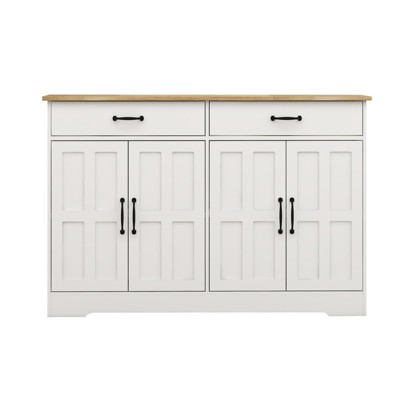 59" Buffet Cabinet, Farmhouse Sideboard with Thick Top, 2 Barn Doors, 4 Drawers and 2 Adjustable Shelves