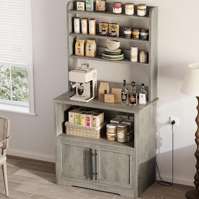 Resenkos Kitchen Baker's Rack with Electrical Outlet, Microwave Stand & Louvered Door,
