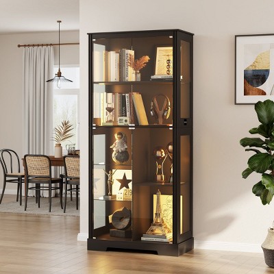 71" Kitchen Pantry Cabinet with LED Lights, 6 Door Shelves, a Drawer and 4 Adjustable Shelves