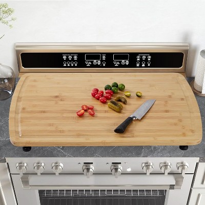 Bamboo Stovetop Cover Cutting Board with Legs, Juice Grooves, Large Gas Burner Protector, Cooktop Noodle Board, Durable and Stylish Stove Cover