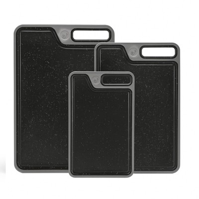 Aoibox Recycled Plastic Cutting Board Set of 3 with Holder, Non-Slip Feet & Juice Grooves, Dishwasher Safe, Nonporous, Grey for Kitchen