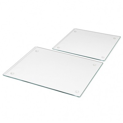 Aoibox Tempered Glass Cutting Board for Kitchen, Clear Heat Resistant Countertop Board with Non-Slip Feet, Set of 2