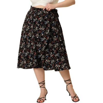 Agnes Orinda Women's Plus Size Boho Wrap Floral Lightweight A-Line Skirt