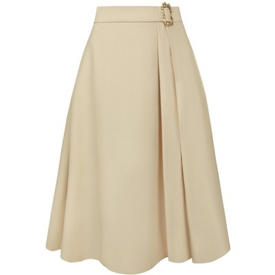 INSPIRE CHIC Women's Lace Satin High Waist A-Line Elegant Midi Skirt