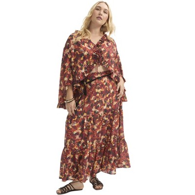 June + Vie by Roaman's Tiered Printed Maxi Skirt