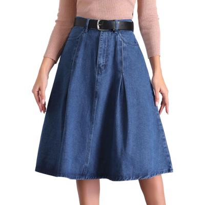 INSPIRE CHIC Women's Midi Solid Elastic Waist Flare Tiered A-Line Skirt with Pockets