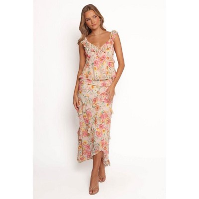 Women’s skirts are making a comeback this season. From casual mini skirts & denim midi skirts to floral maxi skirts, there are a ton of styles to choose from. Check out Target.com to explore the most exciting skirt trends for creating dreamy & romantic looks many of us are craving this summer. Whether you’re looking for a women’s mini skater skirt or a knee-length, tie-dye midi skirt, we got you covered. Switch out the shorts & jeggings with stylish denim skirts to bring a fresh vibe to your spring-summer style for 2021. High-waisted mini skirts can be your go-to for hangouts or errands, while a flounced maxi skirt makes the perfect choice for a beach picnic or wedding date. A mid-length, pleated skirt is a must-have in your wardrobe for creating glam & on-trend looks. Pair a pleated midi or pencil skirt with a button-down shirt for a look that’s playful, yet perfect for formal meetings or sit-down dinners. Wondering what’s the chicest way to style a skirt this season? As part of a suit, or a matching set, of course! Put together a cute & charming outfit in minutes by pairing a floral maxi wrap skirt with a coordinating blouse.